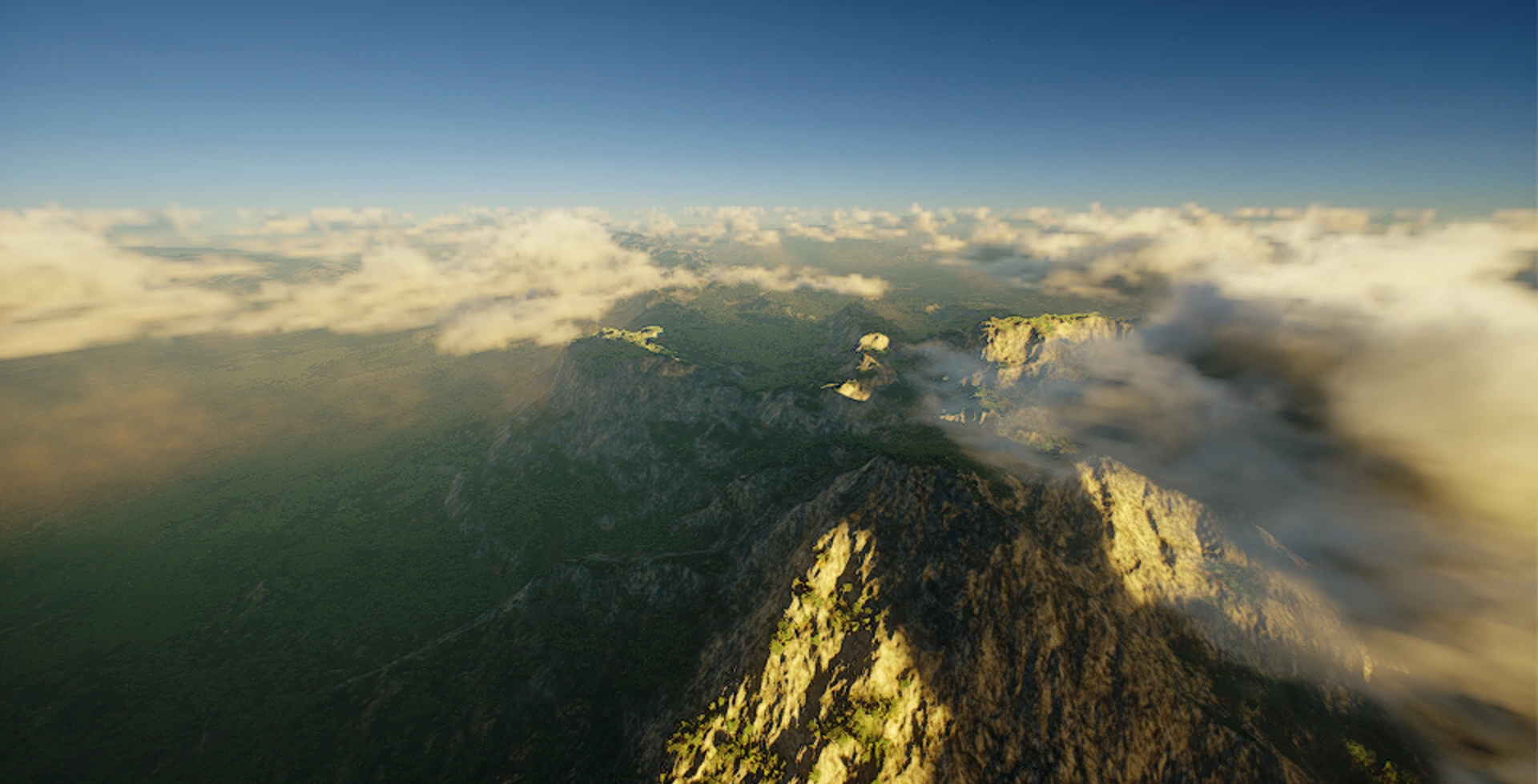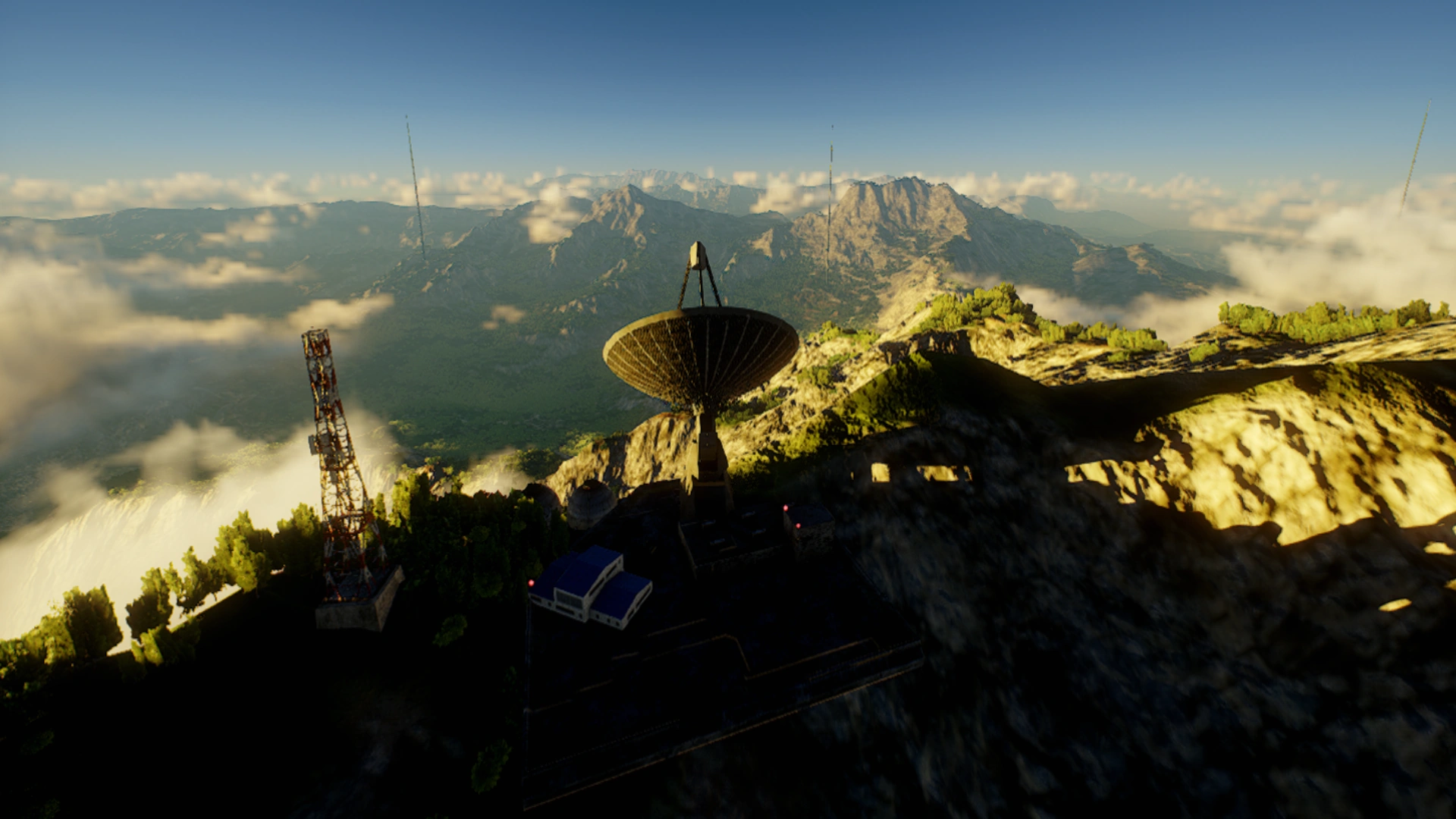 The mountain range is filled with clusters of numerous mountains. There is greenery in most areas including its outskirts. Three Pillars of Communications towers are present, along with a radar site presumably for tracking smugglers and freelancers.
